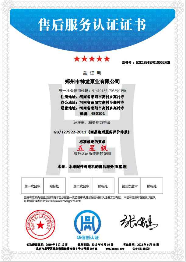 祝贺扬州天宇太阳能设备有限公司获得水泵、水泵配件与电机的五星级售后服务认证。