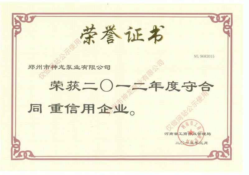 2012年守合同重信用企业